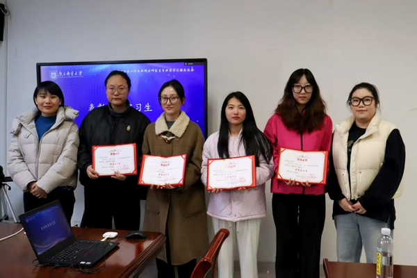 会议第三项议程为“优秀实习生”表彰仪式。在校内外导师对实习报告评分的基础上,经现场评委老师严谨评审、客观打分,最终评选出陈秋旭、张舒涵、杜芸、张佳怡 4 名同学为本次实习的 “优秀实习生”。与会领导、嘉宾为获奖同学颁发荣誉证书,勉励他们珍视荣誉、戒骄戒躁、再创佳绩,也希望全体同学以优秀榜样为标杆,砥砺深耕专业领域,持续提升专业素养与实务能力。